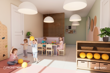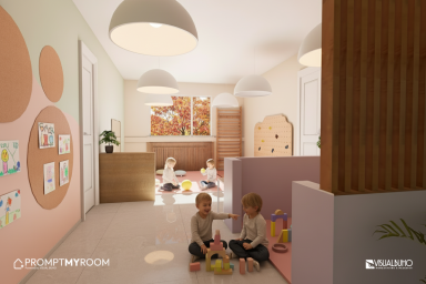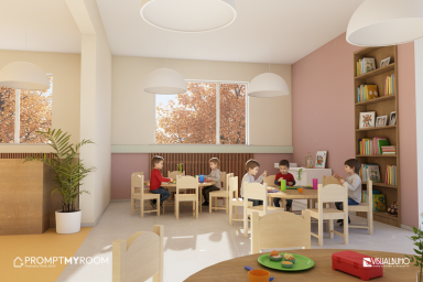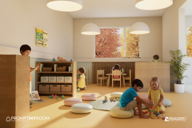 Wir können es kaum erwarten, dass endlich Kinder in unserem Montessori-Kindergarten spielen, entdecken und geborgen aufblühen dürfen. Mit unseren Visualisierungen möchten wir euch schon jetzt zeigen, wie wir die Räume gestalten möchten: hell, klar strukturiert und einladend, sodass sich Kinder geborgen fühlen und selbstständig lernen können.