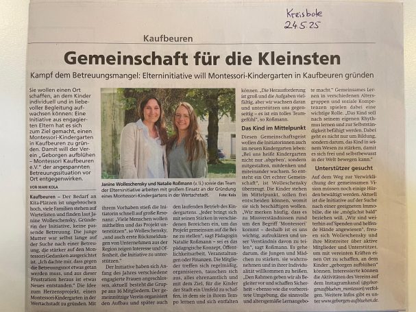 Ein Montessori-Kindergarten für Kaufbeuren - von Eltern initiiert, für Kinder verwirklicht